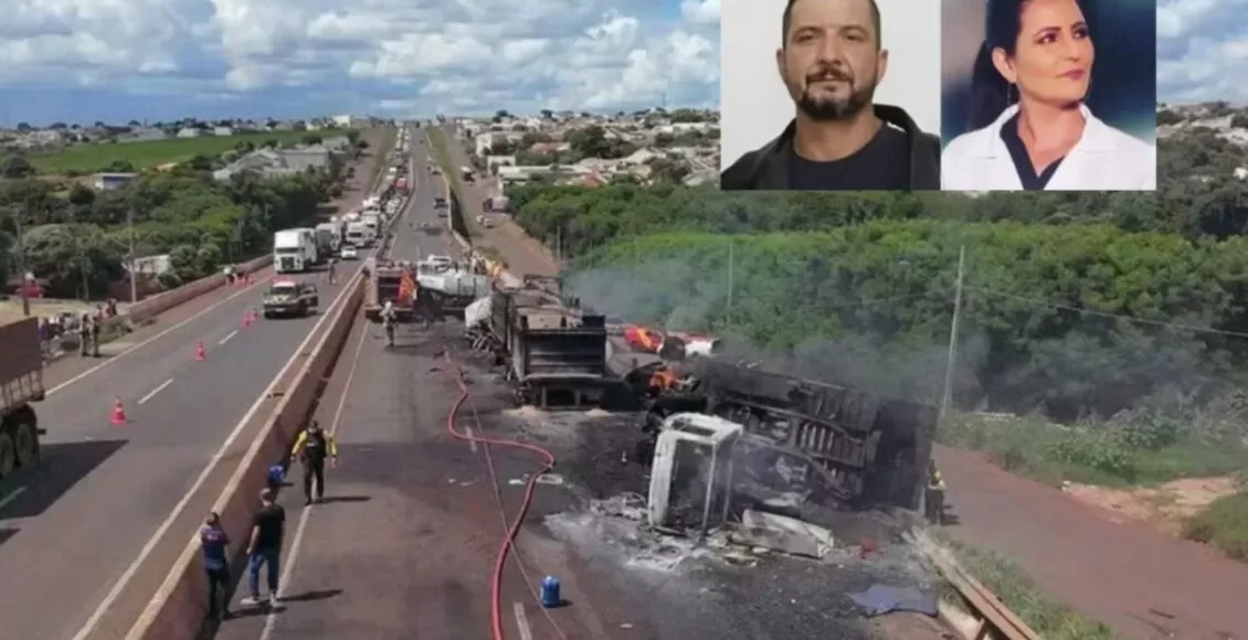 Graziele estava no local acompanhando o marido, que dirigia um dos caminhões envolvidos no acidente. Já Maycon é o motorista de outro caminhão, que morreu carbonizado.