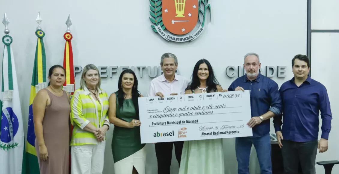 Nesta segunda-feira, 24, a Prefeitura de Maringá, por meio da Secretaria de Aceleração Econômica e Turismo, em parceria com a Associação Brasileira de Bares e Restaurantes (Abrasel), realizou a cerimônia de entrega do repasse dos recursos arrecadados com o Festival Sabor e Música.